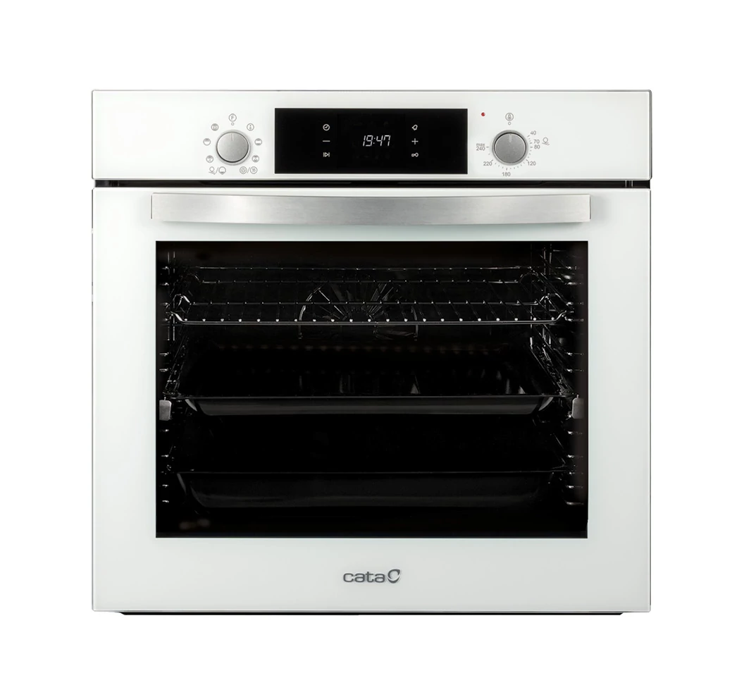 Takarítson meg időt és pénzt a Cata AQUASMART rendszerének köszönhetően. Öntsön egy pohár (200ml) vizet egy kávéskanál mosogatószerrel a sütőtér alsó részére, válassza ki a sütőn az AQUASMART funkciót, 15 percen át üzemeltesse a sütőt majd hagyja kihűlni, utána törölje ki a sütőteret egy szivaccsal és a sütőtér már tiszta is.
