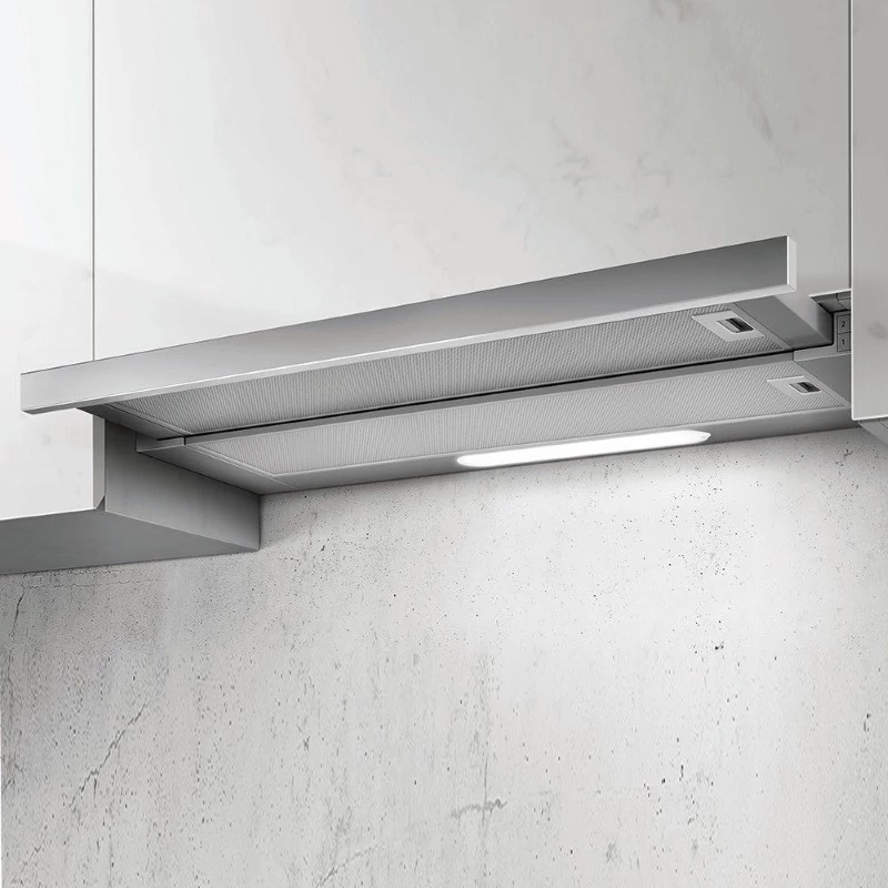 Vezérlése mechanikus (3 fokozatú billenőkapcsoló), illetve külön található világítás kapcsoló, amely az energiatakarékos LED világítást kapcsolja. A motor és a világítás csak akkor működik ha az előlapot kihúzza. A főzés befejezése után javasolt az elszívót kikapcsolni.